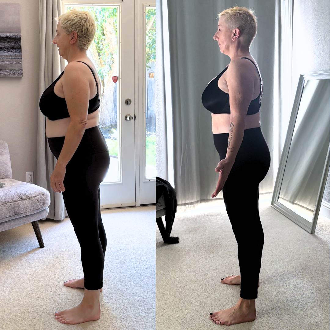 When Michelle first came to me, she was fed up — frustrated by stubborn weight gain, uncomfortable in her body, and deep in the confusing, unpredictable swing of menopause. A single photo taken poolside caught her off guard and cracked something open. She told me later, “I realized it was time for a change.”